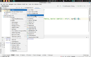 Snapshot ecran CLion prin care se creaza un fisier text nou